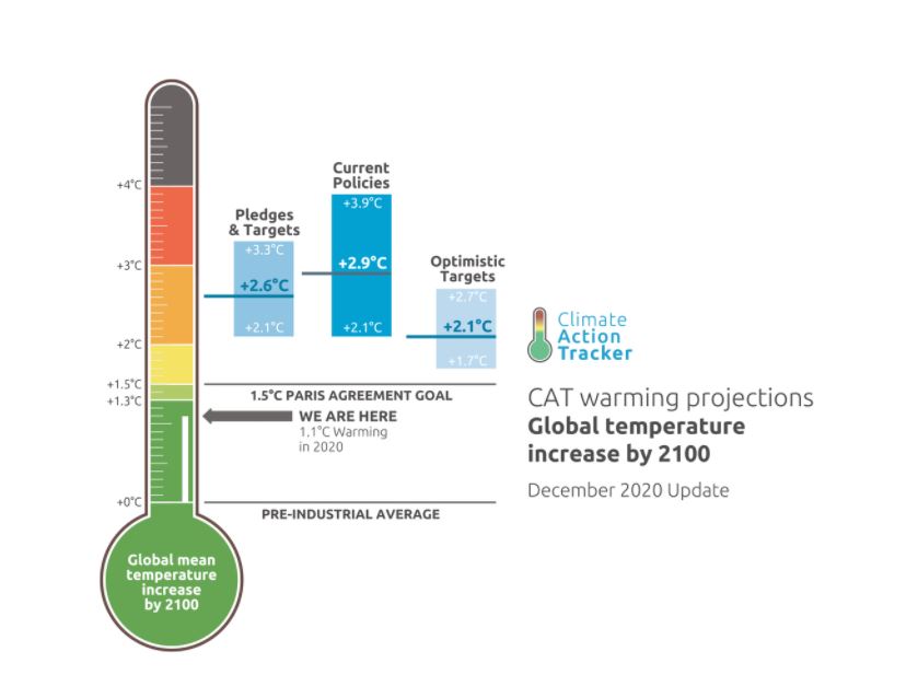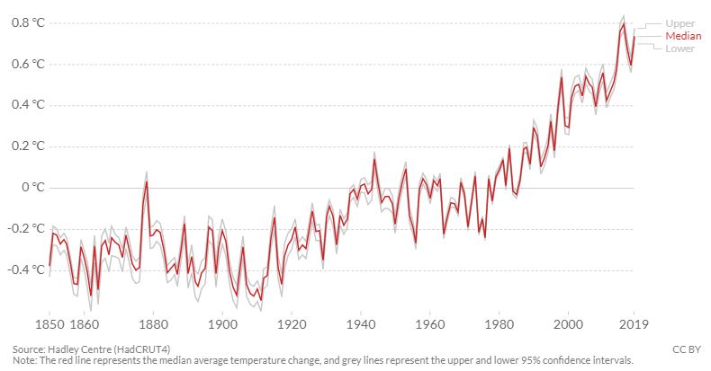 The 2015 Paris Climate Agreement’s aim is to limit global temperature rise this century to below 2° Centigrade and look to pursue a lower increase of 1.5° Centigrade above pre-industrial levels. As the graph below shows, we have already reached a 1.1°C rise in temperature.