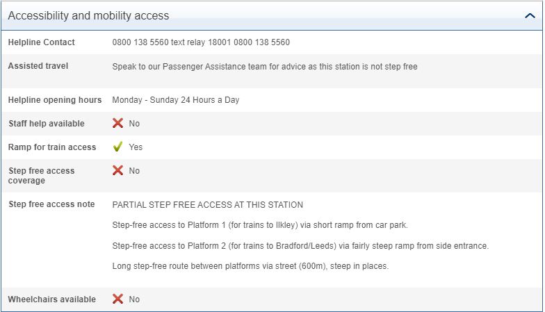 *** Update 5th March 2021 *** Following the publication of this blog Northern have been in touch and have now amended the descriptions of the stations mentioned below. However, a brief look at other stations across the Northern franchise reveals numerous examples of inaccurate information and there remains much to be done across this and other Train Operating Companies to provide accurate information to people with disabilities.