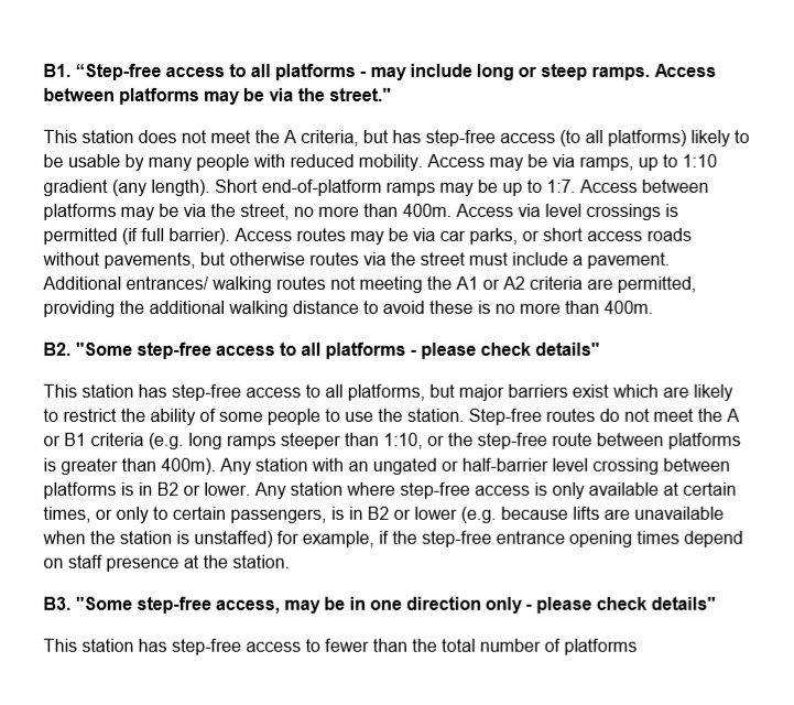 To add to this we also have the Office of Road and Rail (ORR) who have set out station accessibility classifications as set out below: