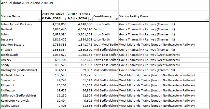 Below are passenger numbers (from highest to lowest) for every station in Bedfordshire. Leagrave station has around 1.8m passengers per year and is the most heavily used station in Bedfordshire that has not been allocated ‘Access for All’ funding to provide step-free access. Just on this criteria alone Leagrave should be at the top of the list for step-free improvements, but there are many other factors by which a station gets allocated funding.