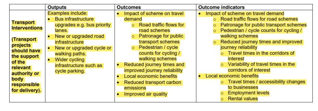 The fund prospectus then goes on to set out the three themes in greater detail. The transport section (page 9 of the prospectus) then goes on to describe the benefits of investment in local transport networks and how they can make a real difference to local communities. It states that projects submitted under the transport investment scheme may include: